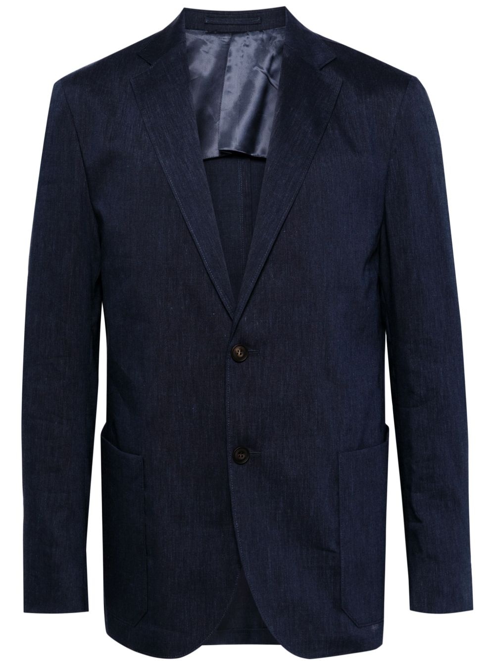 melange-effect single-breasted blazer Highlights - Navy blue - Linen-virgin wool blend - Stretch-design - Melange effect - Notched lapels - Front button fastening - Long sleeves - Buttoned cuffs - Chest welt pocket - Two side patch pockets - Straight hem Made in Italy Composition Outer: Linen/Flax 56%, Virgin Wool 43%, Elastane 1% Lining: Viscose 100% SIZE & FIT Model measurements Height 6 ft 2 in(1.87 m) Bust/Chest 34.25 in(87 cm) Hips 36.22 in(92 cm) Waist 29.52 in(75 cm) FittingInformation Designed for a regular fit, allowing for a comfortably loose fit throughout the body The vented hem offers movement at the rear Made from a midweight non-stretch fabric, this piece offers minimal elasticity when worn This piece fits true to size – take your usual size Washing instructions Dry Clean Only