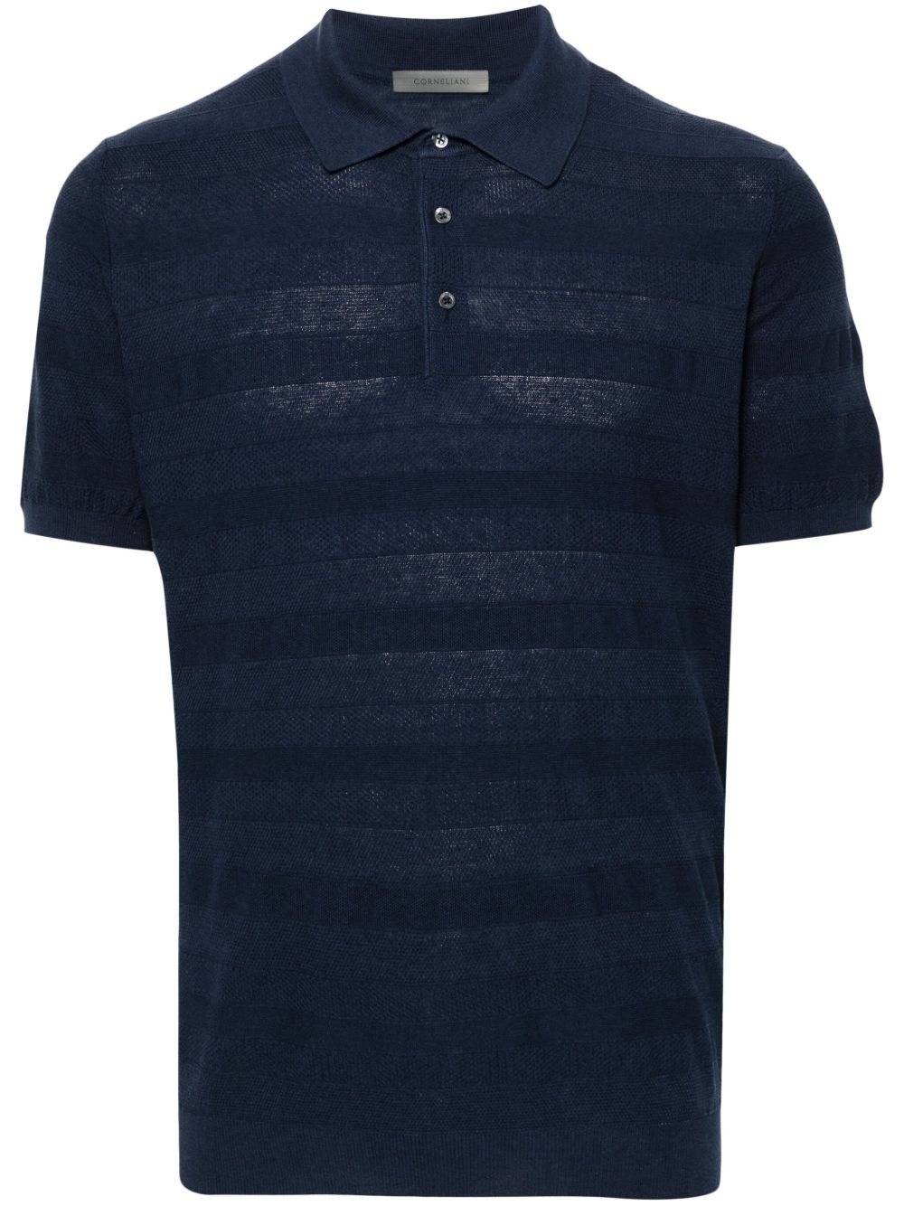 ribbed-knit polo top Highlights - Navy blue - Silk-cotton blend - Knitted construction - Mix knit - Polo collar - Short sleeves - Ribbed cuffs and hem - Short front button fastening Made in Italy Composition Silk 55%, Cotton 45% SIZE & FIT Model measurements Height 6 ft 2 in(1.87 m) Bust/Chest 36.41 in(92.5 cm) Hips 37 in(94 cm) Waist 29.52 in(75 cm) FittingInformation Designed for a relaxed fit, this polo shirt offers comfort and movement Made with a midweight knit, this piece offers some stretch This piece fits true to size – take your usual size Washing instructions Machine Wash