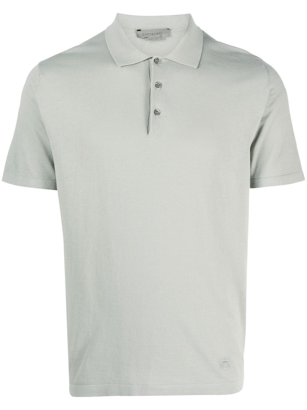short-sleeve cotton polo shirt grey cotton embroidered logo to the front polo collar front button placket short sleeves straight hem Made in Italy Composition Cotton 100% SIZE & FIT Model measurements Height 6 ft 2 in(1.87 m) Bust/Chest 36.41 in(92.5 cm) Hips 37 in(94 cm) Waist 29.52 in(75 cm) FittingInformation This piece fits true to size. We recommend you get your regular size Cut for a slim fit Made with a mid-weight fabric Washing instructions Hand Wash