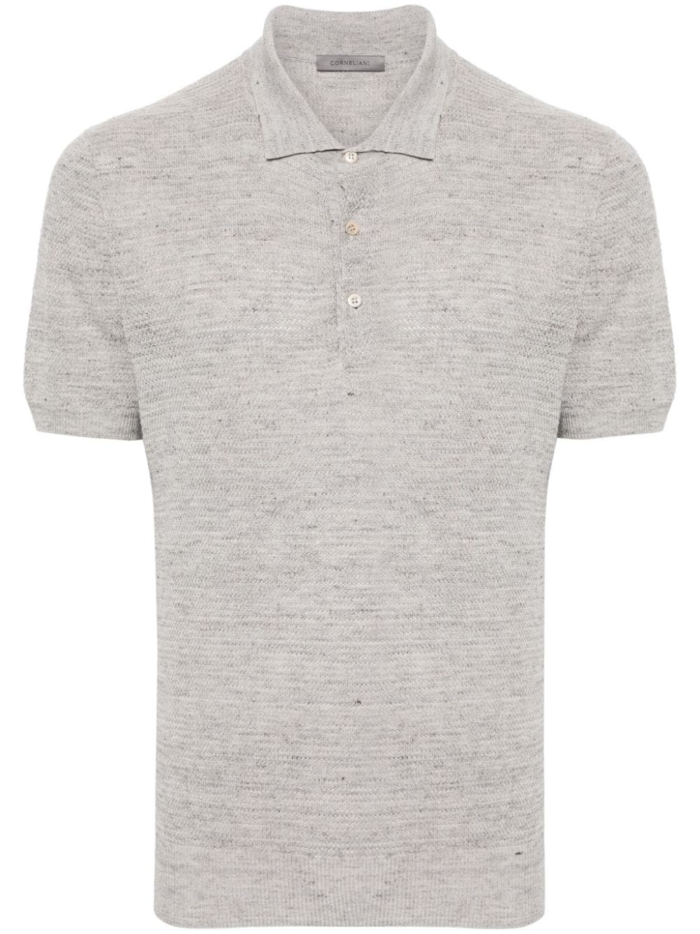short-sleeve knitted polo shirt Highlights - Grey - Linen-silk blend - Knitted construction - Melange effect - Polo collar - Front button placket - Short sleeves - Ribbed cuffs and hem Made in Italy Composition Linen/Flax 70%, Silk 30% SIZE & FIT Model measurements Height 6 ft 2 in(1.87 m) Bust/Chest 36.22 in(92 cm) Hips 37 in(94 cm) Waist 27.95 in(71 cm) FittingInformation Designed for a slim fit, this polo shirt offers a comfortable fit that sits just away from the body Made from a midweight non-stretch fabric, this piece offers minimal elasticity when worn This piece fits true to size – take your usual size