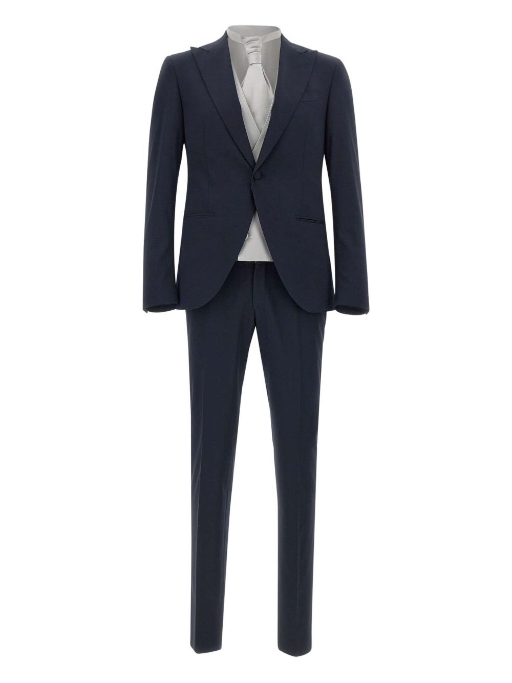 single-breasted suit Highlights - Navy blue - Front button fastening - Jetted chest pocket - Two front welt pockets - Central rear vent Imported Composition Wool 72%, Polyamide 22%, Elastane 6% Washing instructions Read Manufacturer Guidelines
