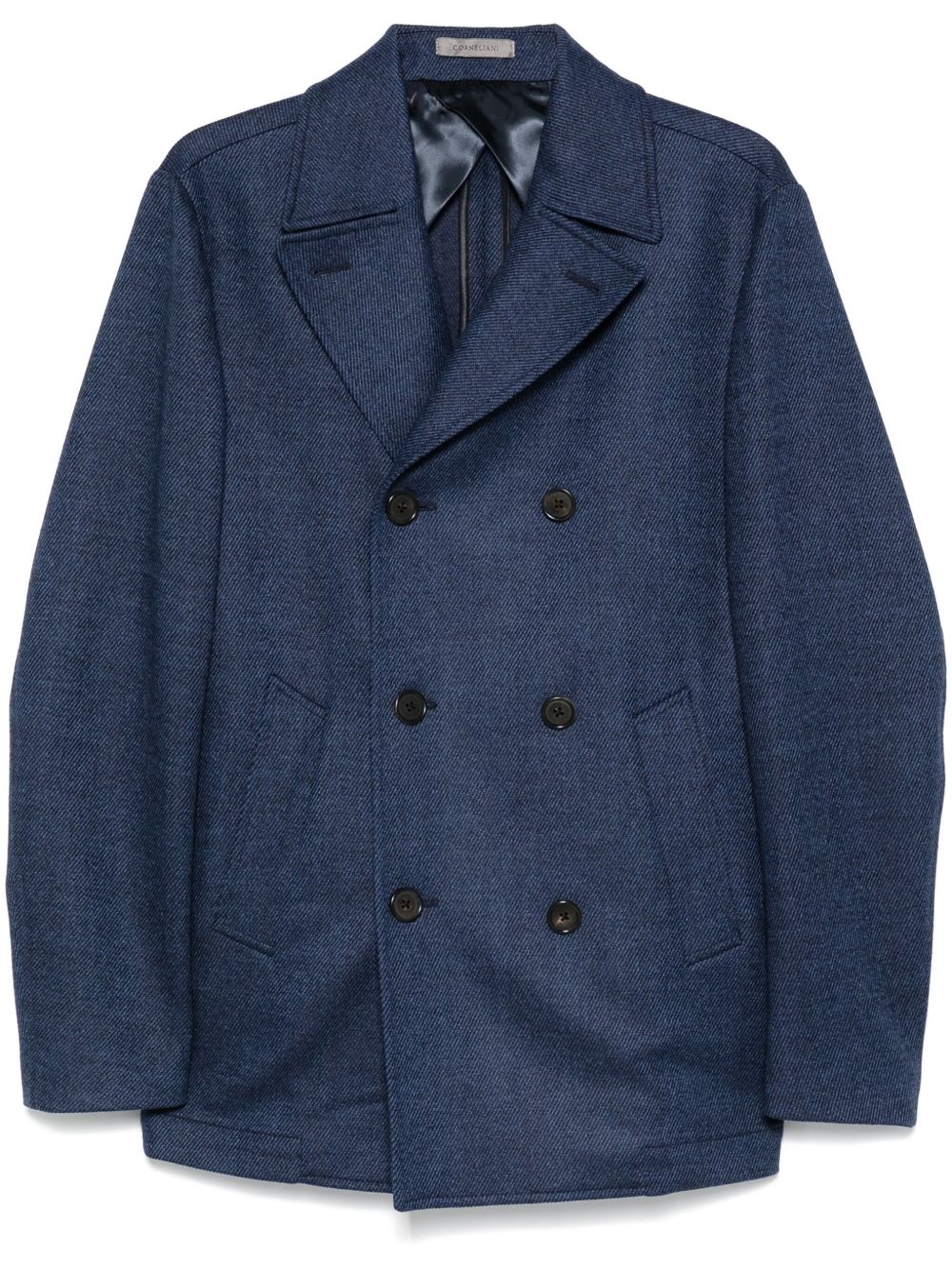 striped peacoat Highlights - Navy blue - Double-breasted button fastening - Two side welt pockets - Central rear vent - Partial lining Imported Composition Outer: Virgin Wool 99%, Spandex/Elastane 1% Lining: Viscose 100% SIZE & FIT Model measurements Height 6 ft 2 in(1.87 m) Bust/Chest 37.79 in(96 cm) Hips 37.79 in(96 cm) Waist 30.31 in(77 cm) FittingInformation Designed for a slim fit, offering a comfortable fit that sits just away from the body The vented hem offers movement at the rear Made from a midweight fabric Washing instructions Dry Clean Only