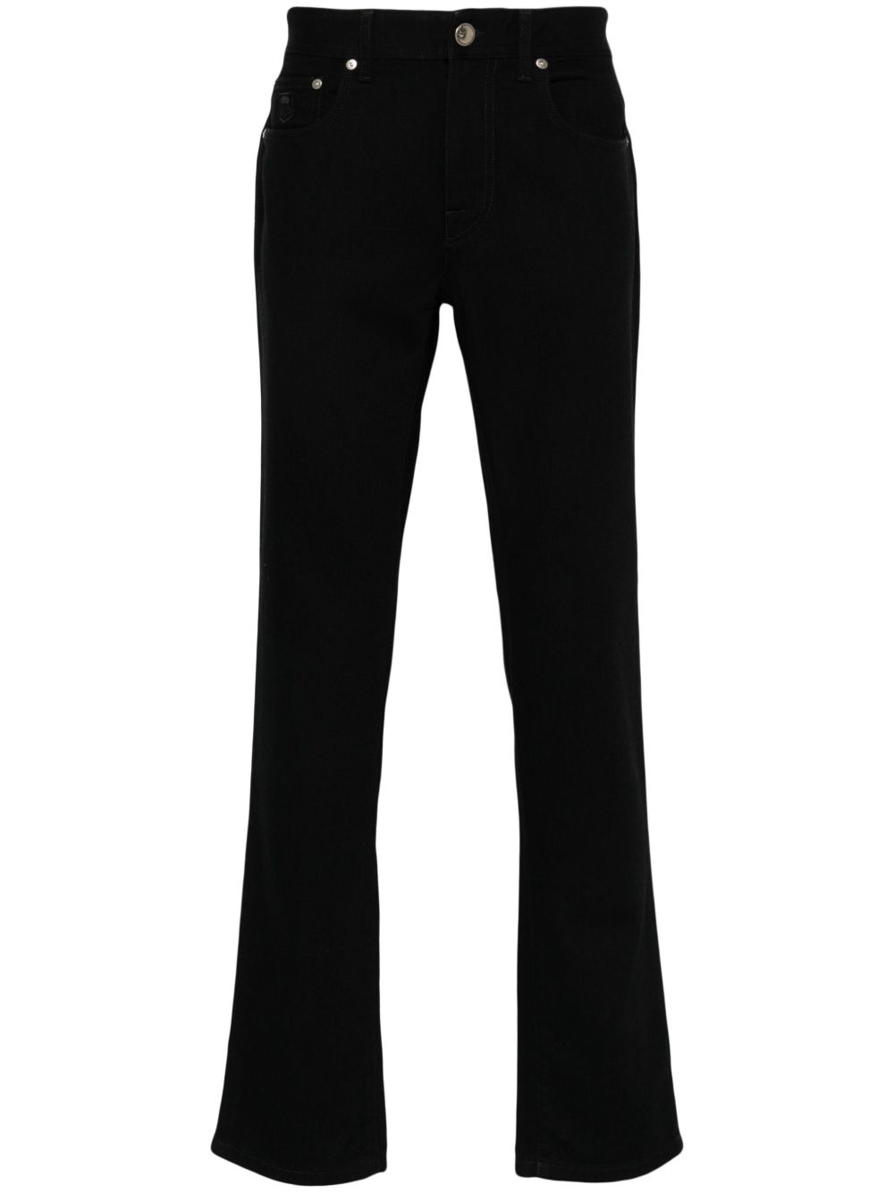 tapered trousers Highlights - Black - Cotton blend - Front button and zip fastening - Classic five pockets - Logo patch to the rear - Tapered leg Imported Composition Outer: Cotton 96%, Elastomultiester 4% Lining: Polyester 65%, Cotton 35% SIZE & FIT Model measurements Height 6 ft 2 in(1.89 m) Bust/Chest 39.76 in(101 cm) Hips 37.4 in(95 cm) Waist 29.92 in(76 cm) FittingInformation Designed for a straight-leg, allowing for an unrestricted and comfortable fit over the leg Made from a midweight stretch fabric, this piece offers elasticity and flexibility when worn Washing instructions Machine Wash