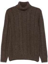 turtleneck sweater Highlights - Chocolate brown - Long sleeves - Ribbed cuffs and hem Made in Italy Composition Cashmere 97%, Wool 3% SIZE & FIT Model measurements Height 6 ft 2 in(1.87 m) Bust/Chest 37.79 in(96 cm) Hips 37.79 in(96 cm) Waist 30.31 in(77 cm) FittingInformation Designed for a relaxed fit, this piece allows for comfort and movement when worn Made with a midweight knit, this piece offers some stretch Washing instructions Hand Wash