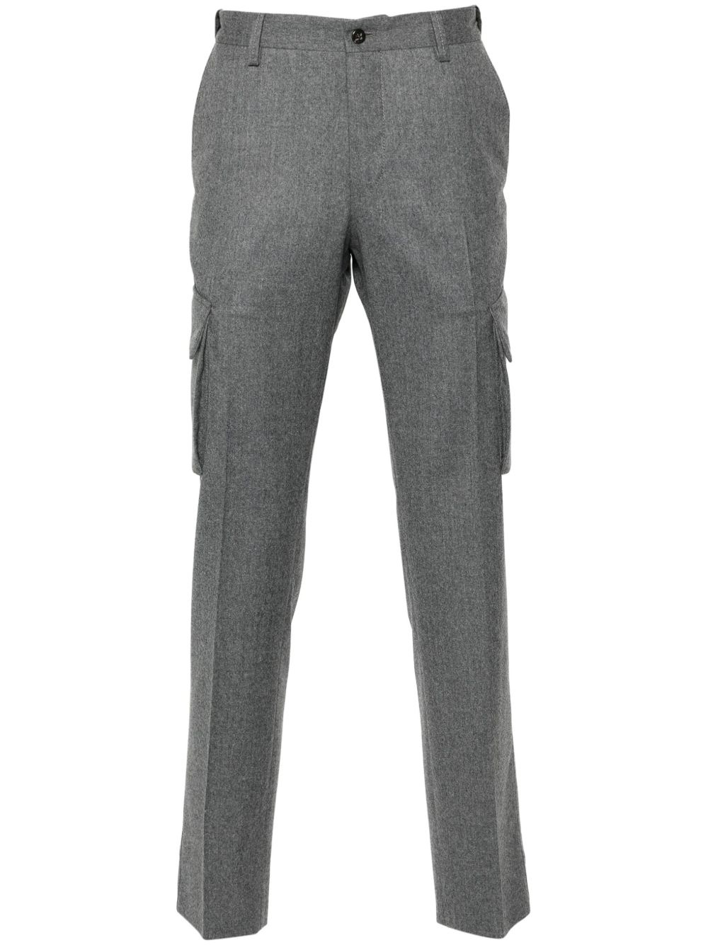 wool trousers Highlights - Heather grey - Wool - Melange effect - Concealed fly and button fastening - Belt loops - Two diagonal pockets to the sides - Two side cargo pockets - Two rear flap pockets - Straight leg Imported Composition Outer: Wool 100%, Polyester 65%, Cotton 35% Lining: Polyester 65%, Cotton 35% SIZE & FIT Model measurements Height 6 ft 1 in(1.86 m) Bust/Chest 36.61 in(93 cm) Hips 37 in(94 cm) Waist 28.74 in(73 cm) FittingInformation Designed for a slim fit, offering a comfortable fit that sits just away from the leg Made from a midweight non-stretch fabric Washing instructions Dry Clean Only