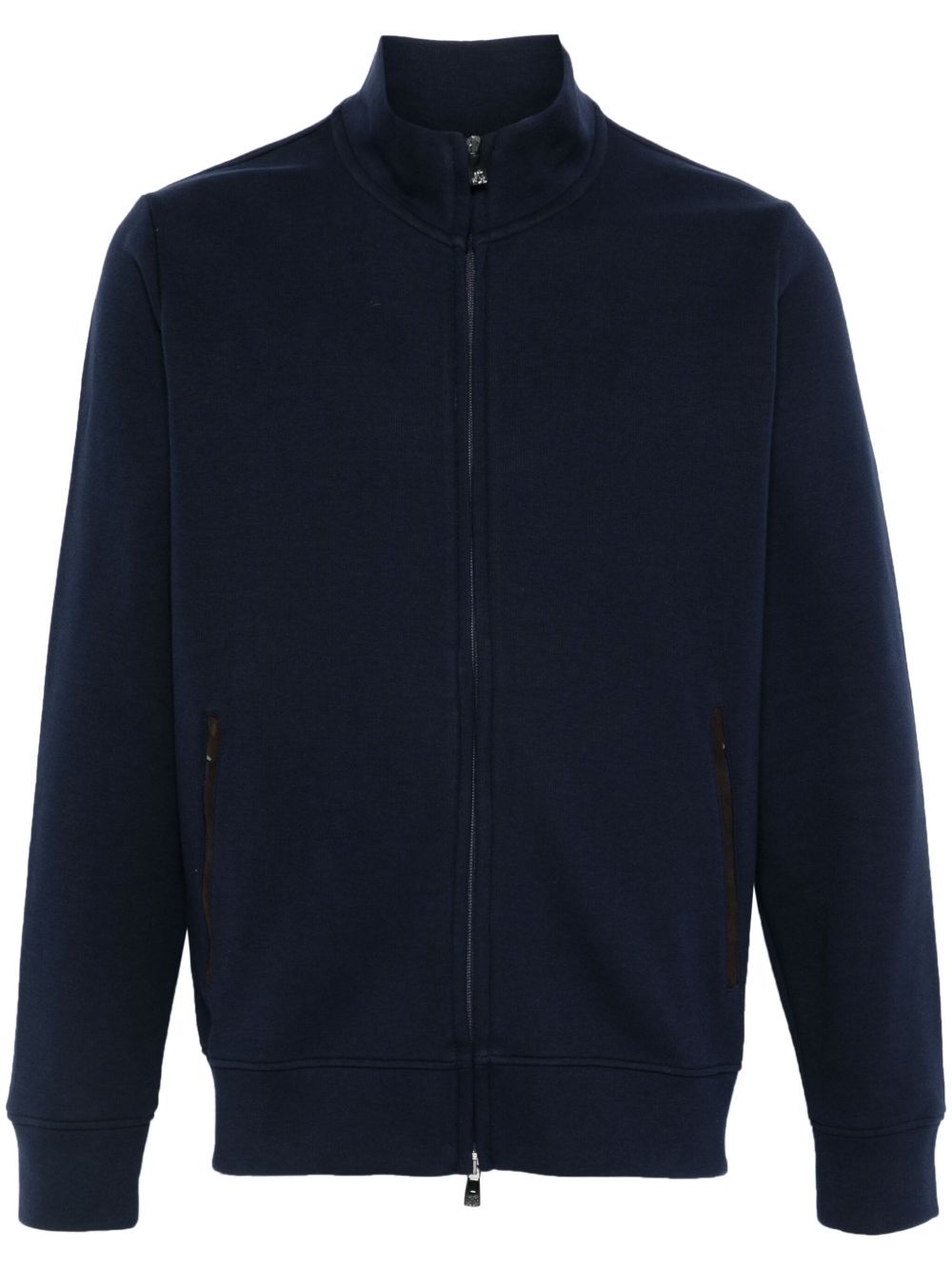 zip-up sweatshirt Highlights - Navy blue - Cotton - Jersey texture - Stand-up collar - Long sleeves - Ribbed cuffs - Front zip fastening pockets - Ribbed hem Made in Italy Composition Lining: Cotton 100% Outer: Cotton 100%, Polyester 68%, Polyurethane 32% SIZE & FIT Model measurements Height 6 ft 2 in(1.89 m) Bust/Chest 39.76 in(101 cm) Hips 37.4 in(95 cm) Waist 29.92 in(76 cm) FittingInformation Designed for a relaxed fit, this piece allows for comfort and movement when worn The ribbed hem offers a close, comfortable fit Made from a midweight non-stretch fabric, this piece offers minimal elasticity when worn Washing instructions Machine Wash