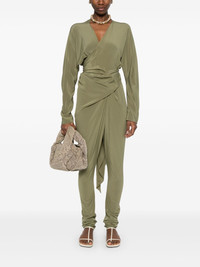 Serp jumpsuit Highlights - Olive green - Tied waist - V-neck - Long sleeves - Draped design Imported Composition Silk 94%, Lycra 6% SIZE & FIT Model measurements Height 5 ft 10 in(1.78 m) Bust/Chest 31.49 in(80 cm) Hips 37 in(94 cm) Waist 23.62 in(60 cm) FittingInformation The tie fastening gives an adaptable and personalised fit Made from a lightweight stretch fabric, this piece offers elasticity and flexibility when worn
