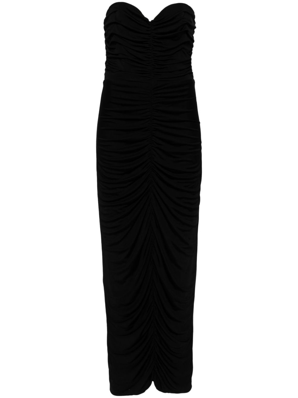 Aveline strapless midi dress Highlights - Black - Silk blend - Stretch-design - Sweetheart neck - Central rear vent - Straight hem Imported Composition Body: Viscose 70%, Silk 30% Lining: Polyester 100% SIZE & FIT Model measurements Height 5 ft 9 in(1.75 m) Bust/Chest 31.88 in(81 cm) Hips 35.03 in(89 cm) Waist 23.22 in(59 cm) FittingInformation Designed for a close fit throughout The moulded cups offer shape and support Made from a midweight non-stretch fabric, this piece offers minimal elasticity when worn This piece fits large – take one size down