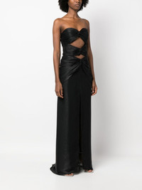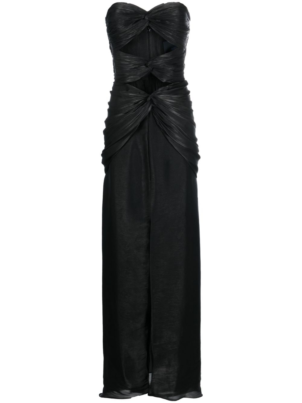 Brigitta cut-out gown A high-octane spirit informs Costarellos' SS23 collection, as evidenced by this floor-length gown. The form-fitting style is crafted from iridescent lurex georgette that's decorated with daring cut-outs framed by knotted detailing and falls to a bias-cut skirt. Highlights - Black - Lurex detailing - Sweetheart neck - Cut-out detailing - Knot detailing - Draped detailing - Concealed rear zip fastening - Front slit - Floor-length Imported Composition Polyester 100% SIZE & FIT Model measurements Height 5 ft 10 in(1.78 m) Bust/Chest 31.49 in(80 cm) Hips 37 in(94 cm) Waist 23.62 in(60 cm) FittingInformation Designed for a close fit throughout Made from a midweight non-stretch fabric This piece fits true to size – take your usual size Washing instructions Dry Clean Only