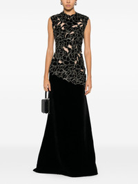 floral-appliqued maxi dress Highlights - Black - Floral applique - Sleeveless - Rear zip fastening Imported Composition Outer: Rayon 57%, Silk 19%, Polyester 18%, glass 3%, Brass 3% Lining: Polyester 50%, Polyamide 50% SIZE & FIT Model measurements Height 5 ft 9 in(1.76 m) Bust/Chest 31.88 in(81 cm) Hips 35.43 in(90 cm) Waist 24.8 in(63 cm) Washing instructions Dry Clean Only