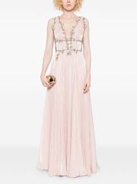 floral-embellished pleated maxi dress Highlights - Pink - Pleated skirt - Sleeveless - Floral embroidery - Sheer yoke Imported Composition Polyester 100% SIZE & FIT Model measurements Height 5 ft 9 in(1.75 m) Bust/Chest 34.64 in(88 cm) Hips 36.61 in(93 cm) Waist 26.37 in(67 cm) Washing instructions Dry Clean Only