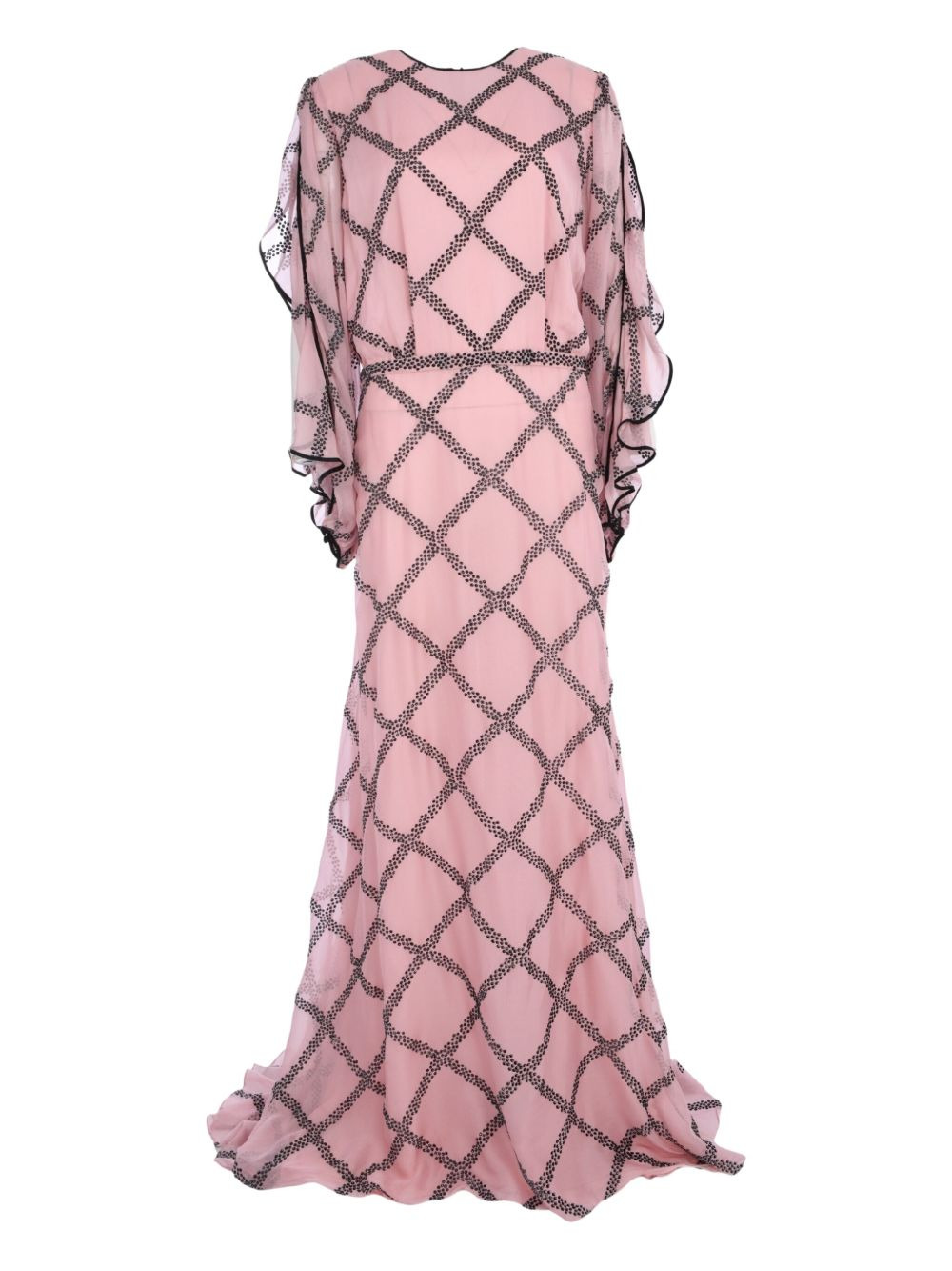 glitter-trimmed silk gown Highlights - Pink - Silk - Geometric pattern - Ruffled sleeves - Glitter trim Imported Composition Silk 100% Washing instructions Read Manufacturer Guidelines