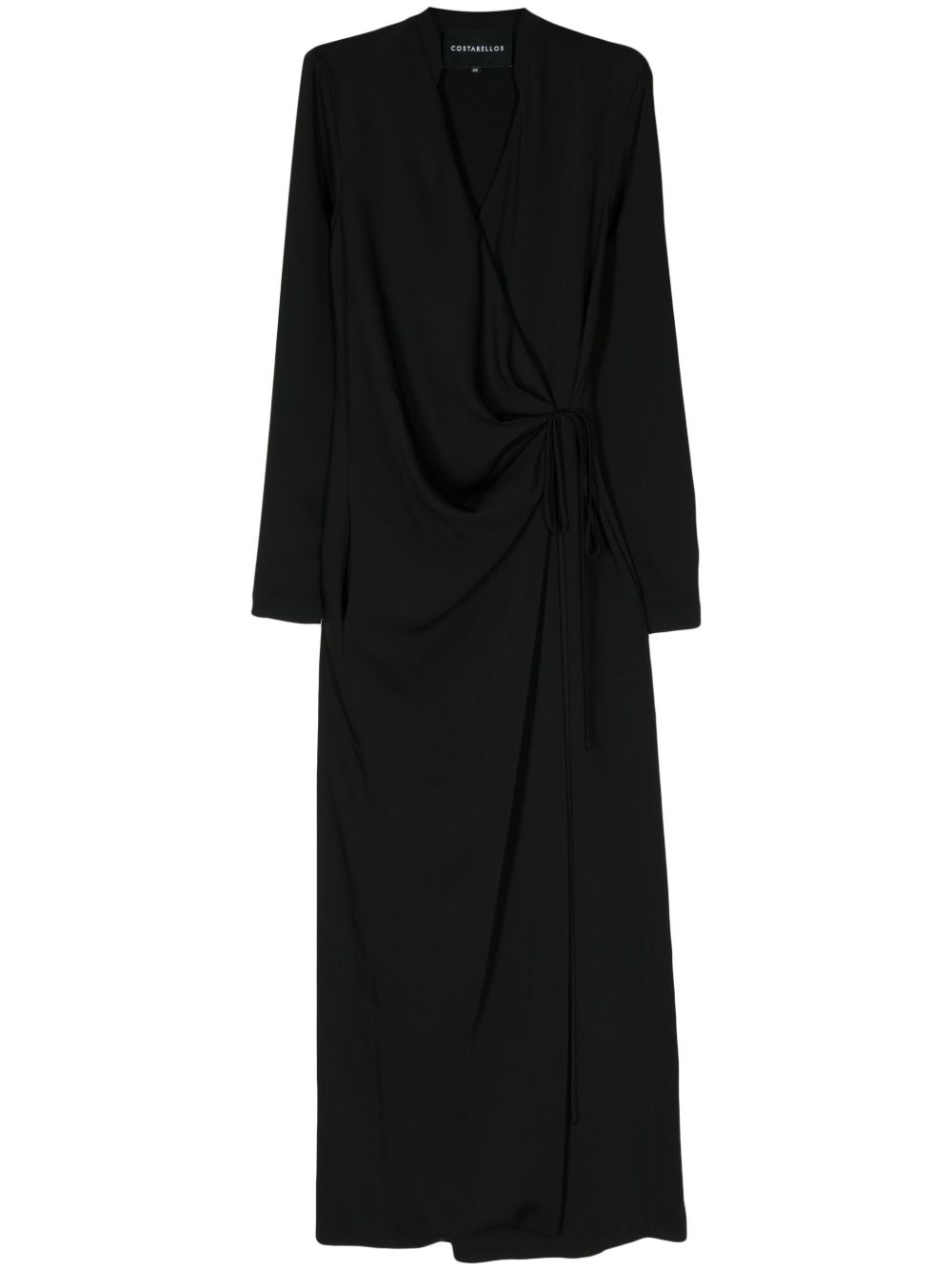 Jenella crepe wrap dress Highlights - Black - Crepe texture - Wrap design - V-neck - Front tie fastening - Long sleeves - Long length - Straight hem Imported Composition Polyester 100%