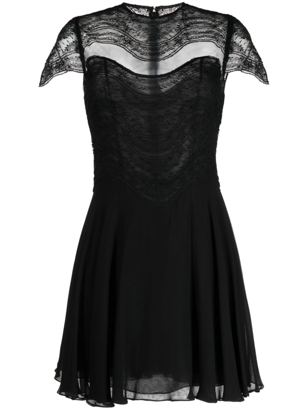 Mangano silk georgette minidress Highlights - Black - Silk georgette - Chantilly lace - Round neck - Concealed rear zip fastening - Cap sleeves - Fitted waistline - Flared skirt - Flared hem - Above-knee length Imported Composition Lining: Polyester 100% Nylon 100% Outer: Silk 100% SIZE & FIT Model measurements Height 5 ft 10 in(1.77 m) Bust/Chest 28.74 in(73 cm) Hips 35.82 in(91 cm) Waist 24.4 in(62 cm) Washing instructions Dry Clean Only