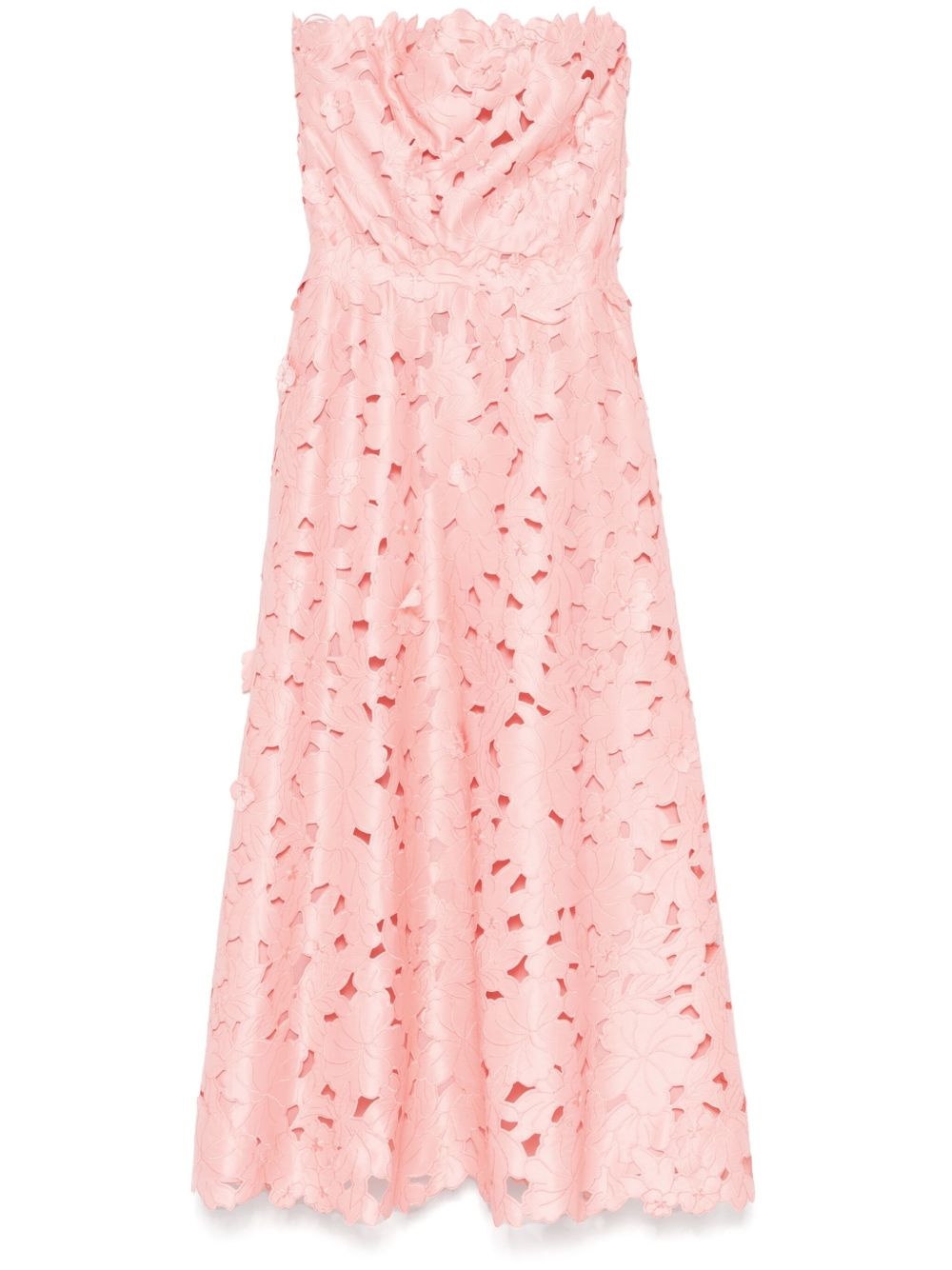 Delmara Strapless Cutout Embroidered Satin Midi Dress