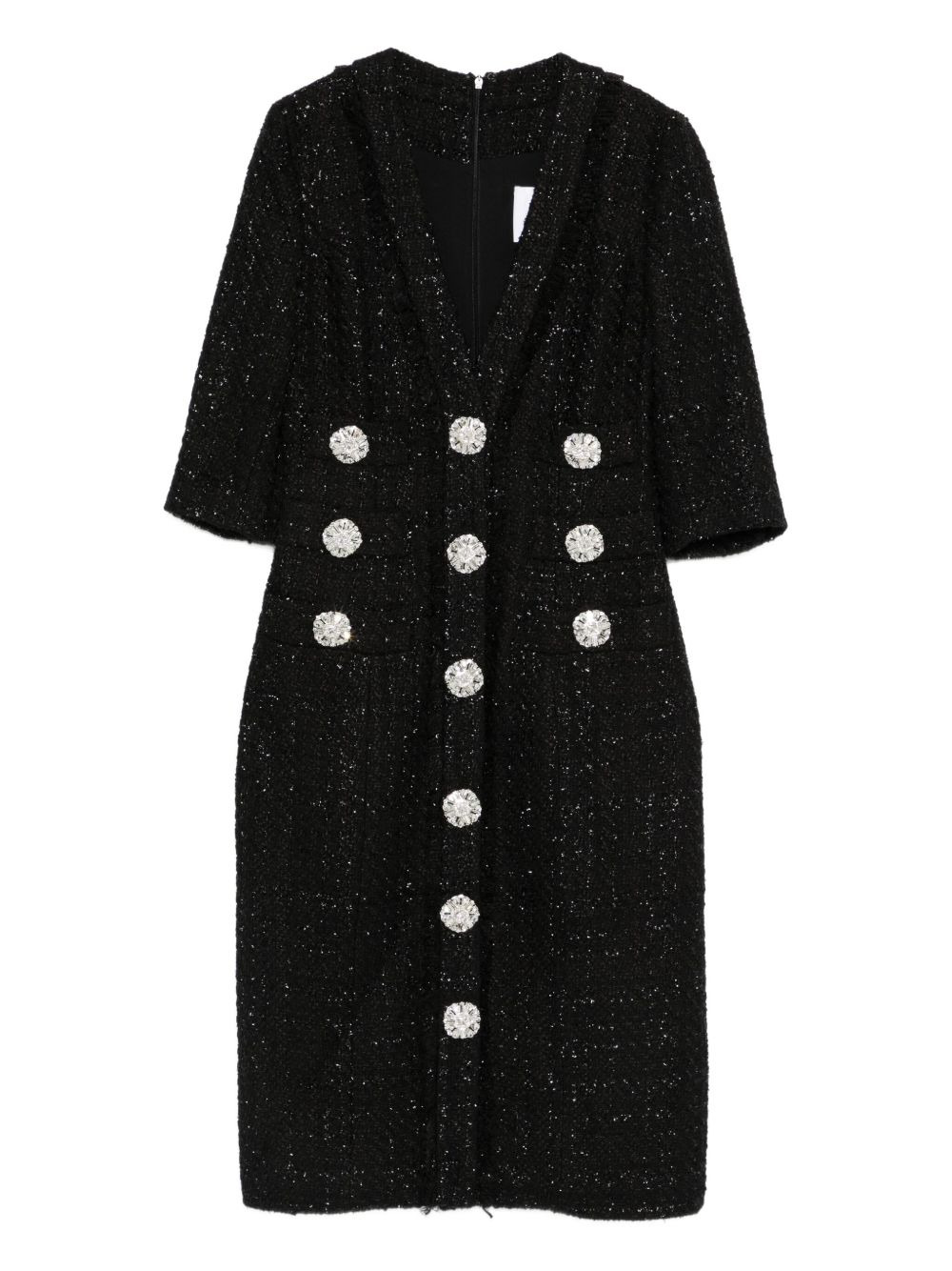 V-neck embellished-button midi dress