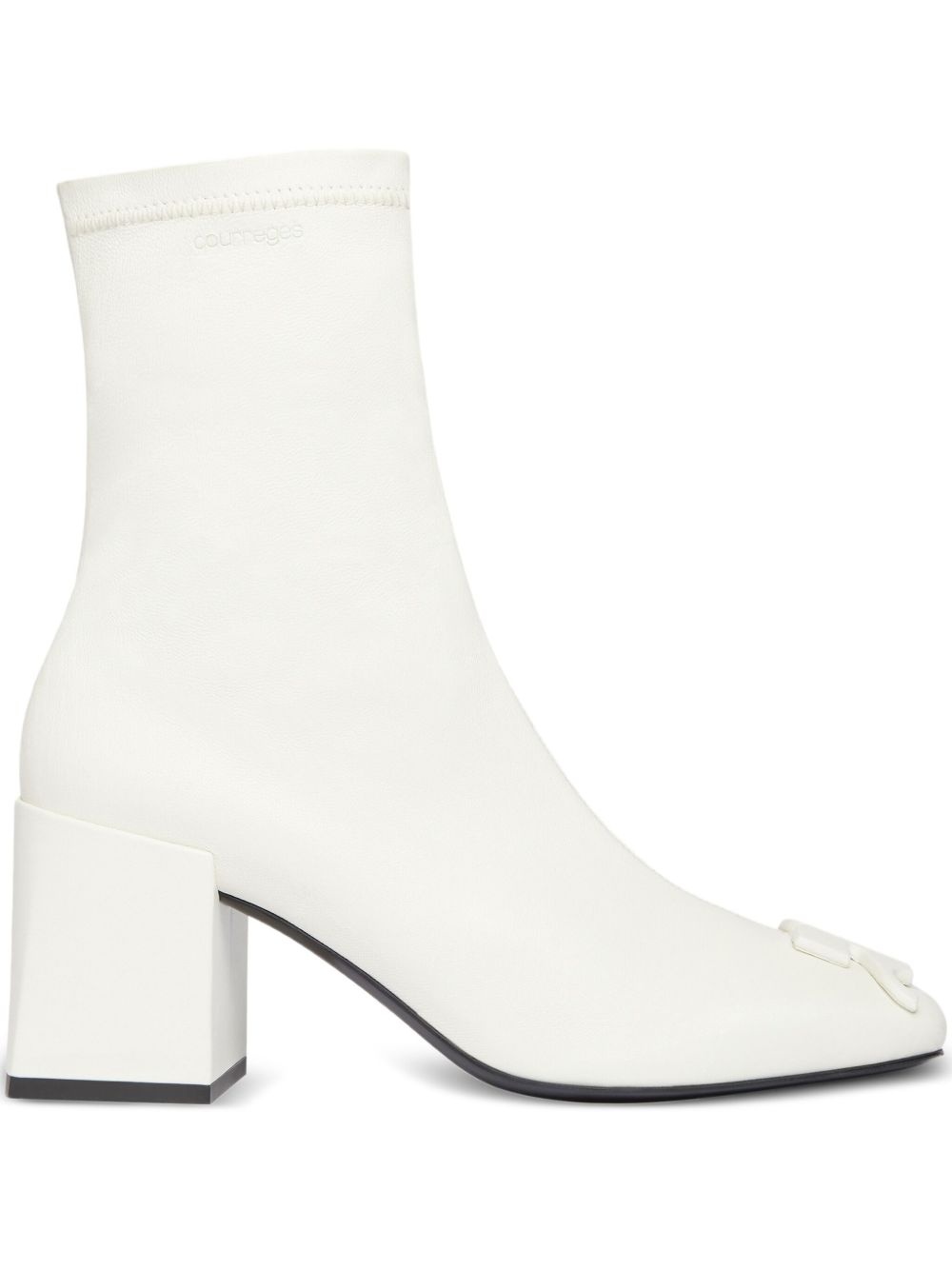 70mm block-heel ankle boots Highlights - White - Square toe - Logo embellishment - Zip fastening - Block heel Made in Italy Composition Outer: Lamb Skin 100% Sole: Leather 100% Lining: Leather 100% SIZE & FIT Measurement HEEL 2.75 in(7 cm)