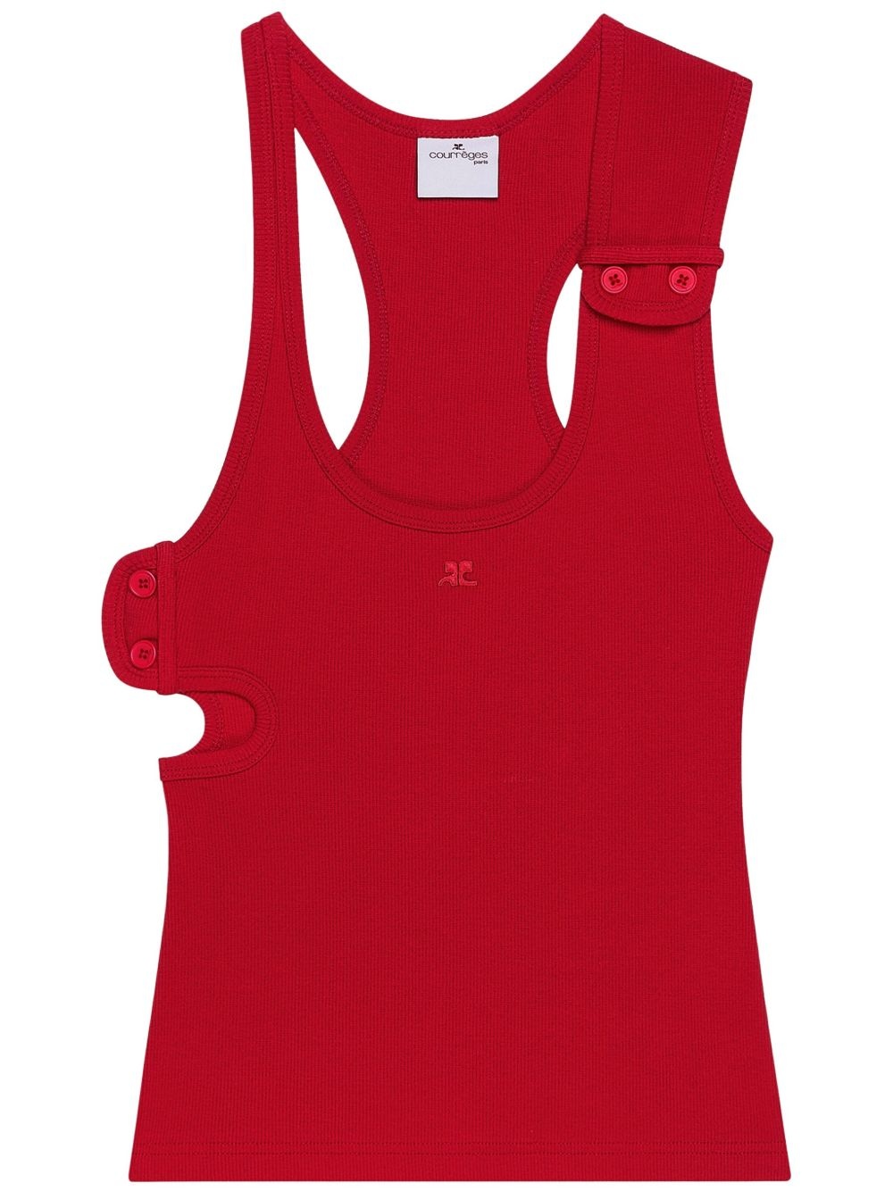 90's ribbed tank top Highlights - Ruby red - Button fastening - Scoop neck - Sleeveless - Cut-out detailing Imported Composition Cotton 98%, Elastane 2%
