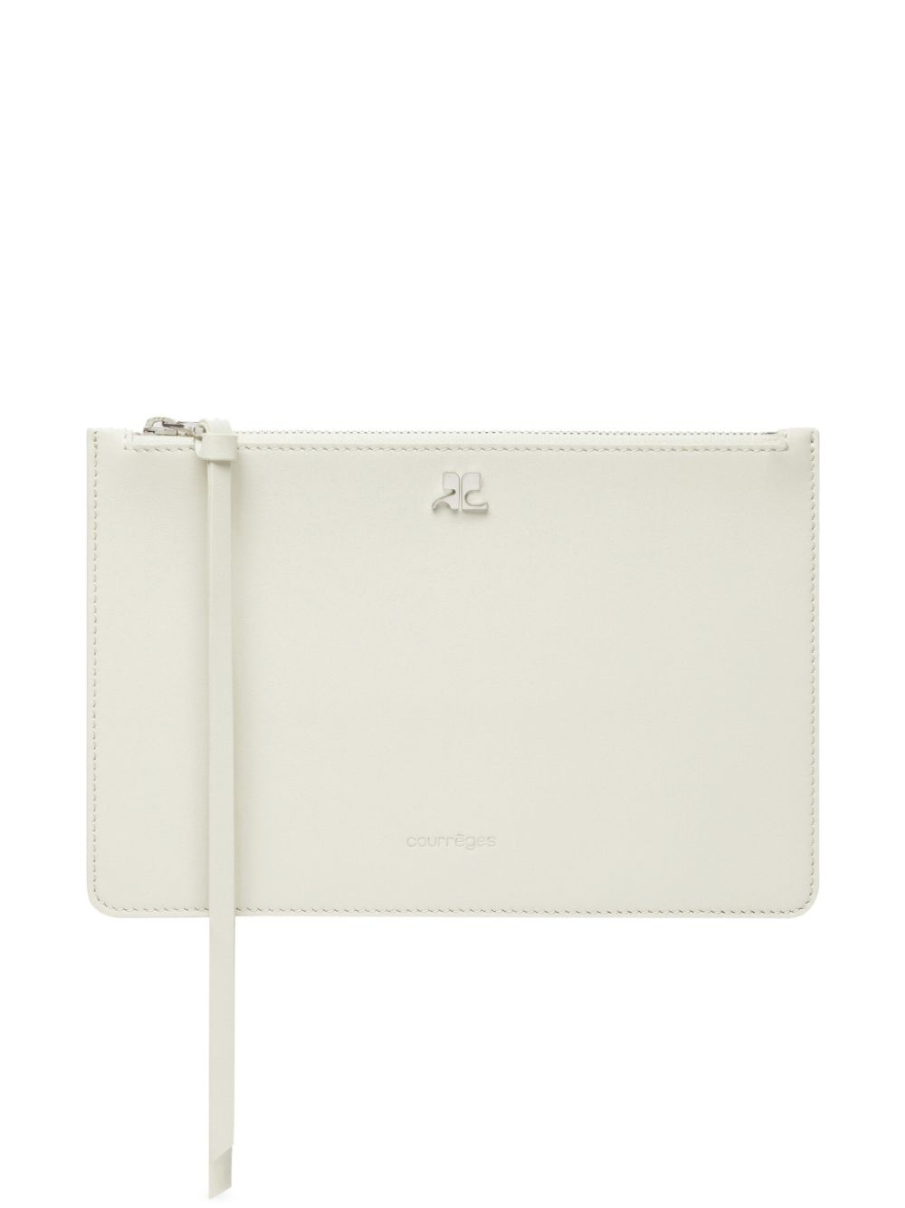 AC leather pouch Highlights - White - Top zip fastening - Wrist strap - Debossed logo to the front Imported Composition Outer: CALFSKIN 100% SIZE & FIT Measurement LENGTH 8.26 in(21 cm) WIDTH 5.51 in(14 cm)