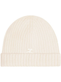 AC logo wool beanie Highlights - Light beige - Wool - Embroidered logo to the front - Ribbed knit - Turn-up hem Made in France Composition Wool 100%