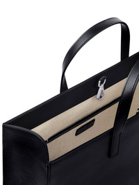 AC tote bag Highlights - Black - Two top handles - Detachable shoulder strap - Internal slip pocket - Debossed logo to the front Imported Composition Outer: CALFSKIN 100% SIZE & FIT Measurement HEIGHT 19.09 in(48.5 cm) WIDTH 13.77 in(35 cm)
