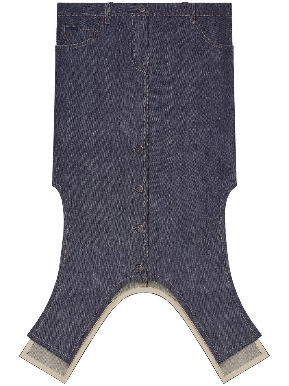 asymmetric-hem skirt Highlights - Dark grey - Cotton blend - Denim - Logo patch to the rear - Mid-rise - Front button fastening - Classic five pockets - Asymmetric hem - Ankle-length Made in Italy Composition Cotton 98%, Elastane 2%