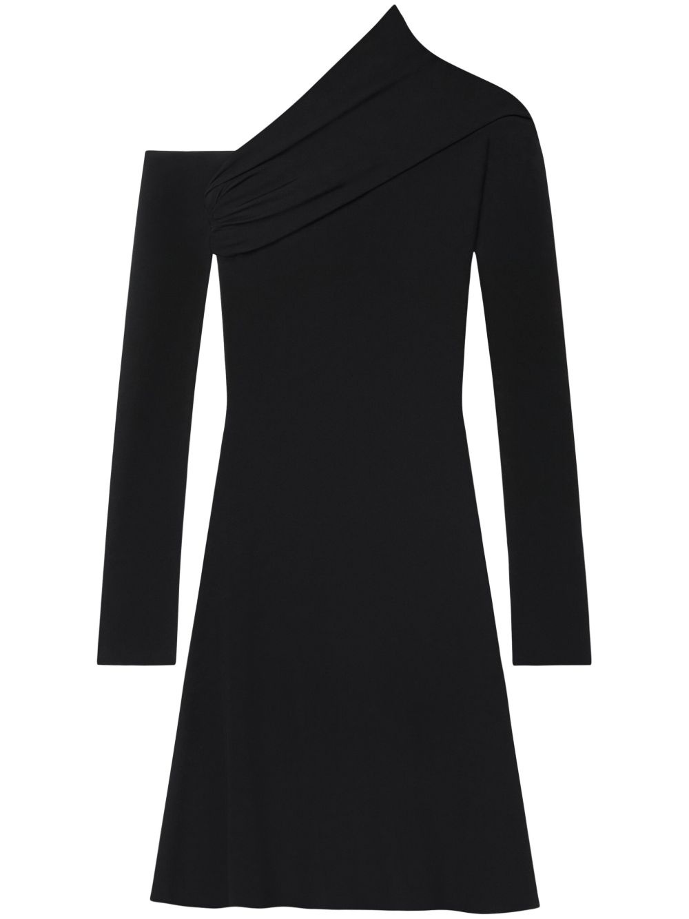 asymmetric twist crepe mini dress Highlights - Black - Stretch-design - Crepe texture - Asymmetric neck - Off-shoulder - Draped detailing - Long sleeves - Above-knee length - Straight hem Imported Composition Viscose 95%, Elastane 5%