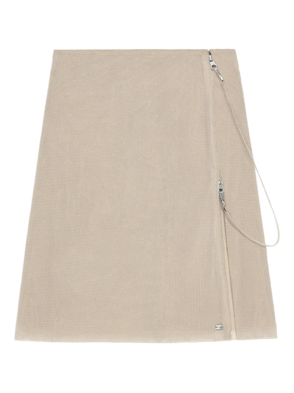 asymmetrical zip-front skirt Highlights - Beige - Asymmetrical design - Zip fastening detail - Side pocket - Subtle textured finish Made in Italy Composition Outer: Polyamide 47%, Aluminium 45%, Fabric 8% Washing instructions Read Manufacturer Guidelines