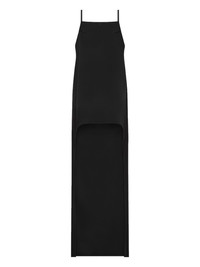 backless satin long dress Highlights - Black - Satin finish - Backless - Spaghetti-straps - Square-neck - Asymmetric-hem Imported Composition Triacetate 83%, Polyester 17% Washing instructions Read Manufacturer Guidelines