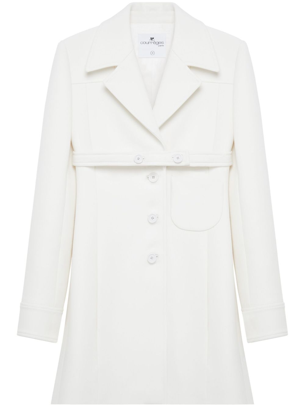 belted coat Highlights - White - Front button fastening - Side patch pocket - Notched lapels - Long sleeves Made in Italy Composition Viscose 52%, Polyamide 26%, Virgin Wool 18%, Spandex/Elastane 4% Washing instructions Read Manufacturer Guidelines