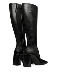block-heeled knee-high boots Highlights - Black - Pointed toe - Glossy finish - 90mm block heel - Embossed logo detail - Zip fastening Made in Italy Composition Lining: Leather 100% Outer: Bovine Leather 100% Sole: Leather 100% SIZE & FIT Measurement HEEL 2.75 in(7 cm)