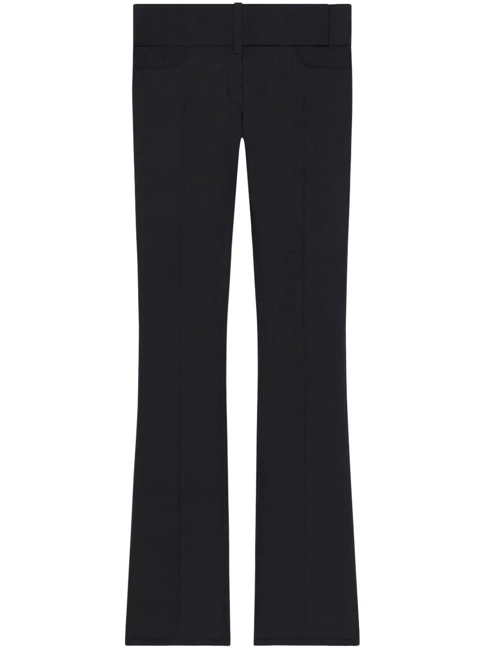 bootcut trousers Highlights - Black - Concealed front fastening - Two side slit pockets - Two rear patch pockets - Belted waist Imported Composition Polyester 65%, Cotton 35% Washing instructions Read Manufacturer Guidelines