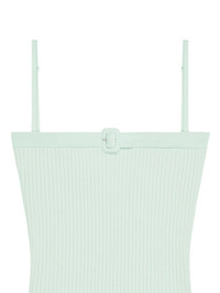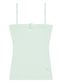 buckle-detail ribbed-knit top Highlights - Light mint - Ribbed-knit - Buckle detail - Thin straps - Sleeveless - Tonal stitching Imported Composition Viscose 70%, Polyester 30% Washing instructions Read Manufacturer Guidelines