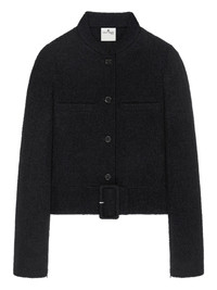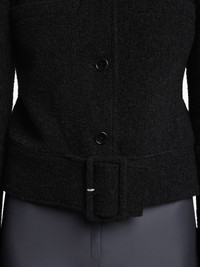 buckle-detail tweed jacket Highlights - Black - Tweed texture - Buckle detail - Button fastening - High neck - Logo detail Imported Composition Outer: Polyester 60%, Cotton 30% Washing instructions Read Manufacturer Guidelines