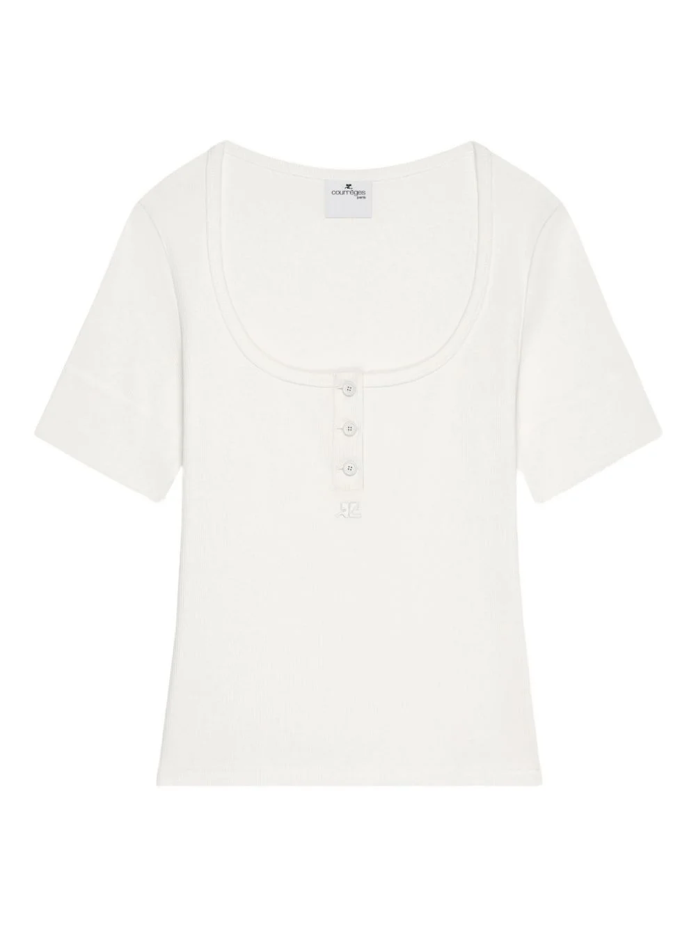 buttoned T-shirt Highlights - White - Ribbed knit - Button fastening - Short sleeves - Round neck Imported Composition Outer: Cotton 98%, Elastane 2% Washing instructions Read Manufacturer Guidelines