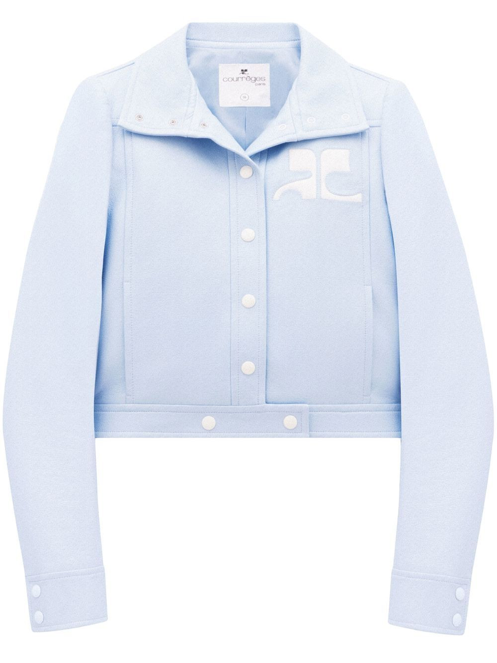 chest logo-patch shirt jacket sky blue cotton logo patch at the chest spread collar front press-stud fastening long sleeves two front welt pockets Imported Composition Cotton 88%, Polyurethane 10%, Elastane 2%
