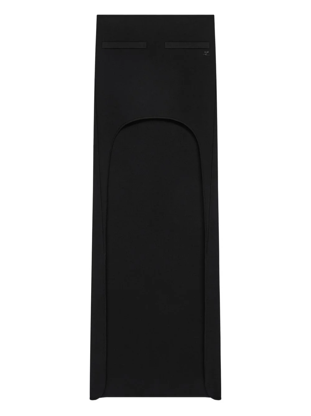circle-edged knitted asymmetric skirt Highlights - Black - Knitted construction - Edged detail - Asymmetric hem Imported Composition Viscose 83%, Polyester 17% Washing instructions Read Manufacturer Guidelines