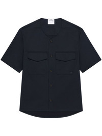 collarless shirt Highlights - Midnight blue - Front button fastening - Two chest flap pockets - Short sleeves Imported Composition Polyester 65%, Cotton 35%