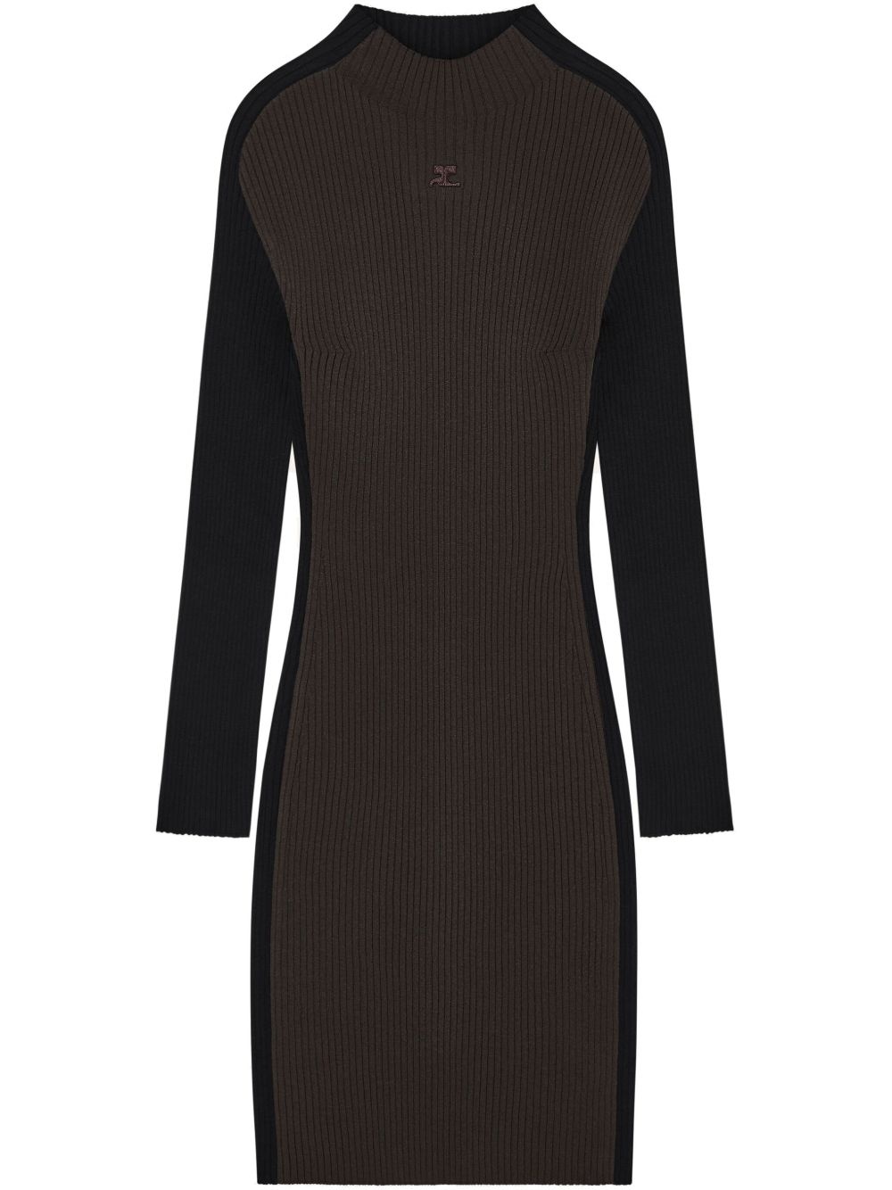 colour-block ribbed-knit mini dress Highlights - Brown/black - Ribbed knit - Colour-block panelled design - Logo patch at the chest - Crew neck - Long sleeves - Above-knee length - Straight hem Imported Composition Viscose 70%, Polyester 30% Washing instructions Read Manufacturer Guidelines