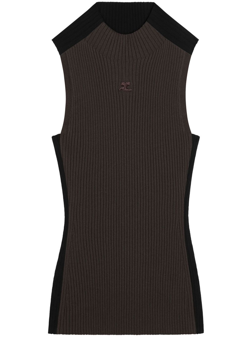Contrast Frame ribbed tank top Highlights - Brown/black - Ribbed knit - Two-tone design - Embroidered logo to the front - High neck - Sleeveless - Straight hem Imported Composition Viscose 70%, Polyester 30% Washing instructions Read Manufacturer Guidelines