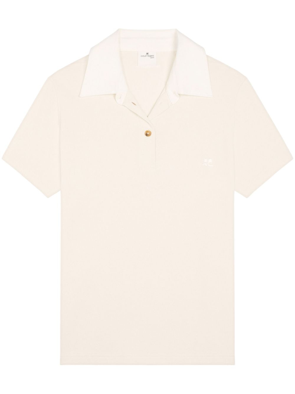 contrasting cotton blend polo shirt Highlights - Off-white - Cotton blend - Contrasting collar - Embroidered logo at the chest - Front button placket - Straight hem Imported Composition Cotton 96%, Polyamide 4% Washing instructions Read Manufacturer Guidelines