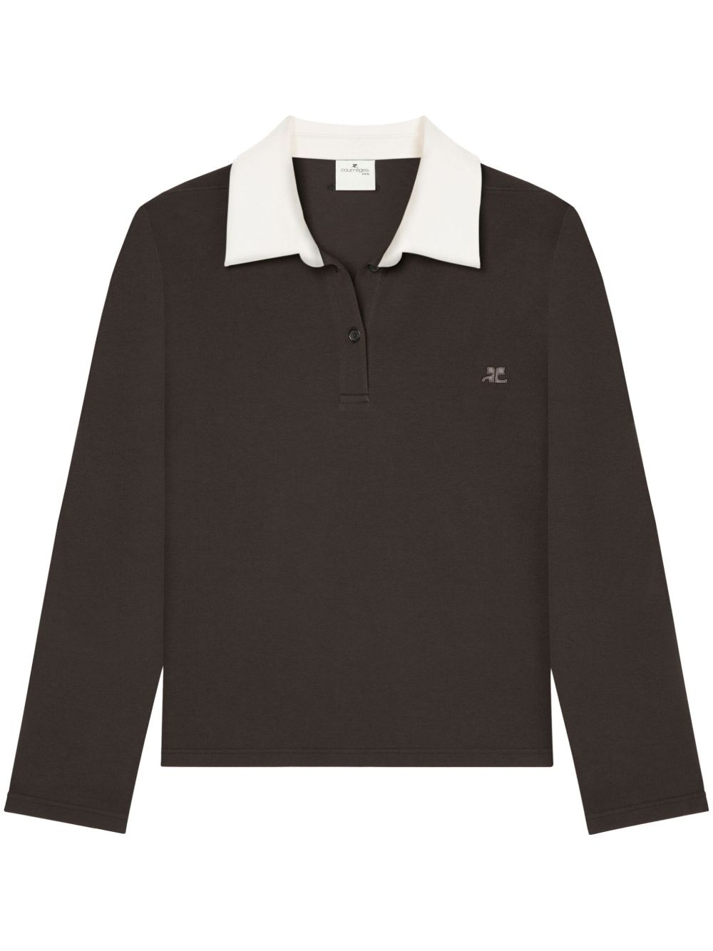 cotton blend polo shirt Highlights - Chocolate brown - Cotton blend - Front button placket - Long sleeves - Embroidered logo at chest and to the rear Imported Composition Cotton 96%, Polyamide 4%