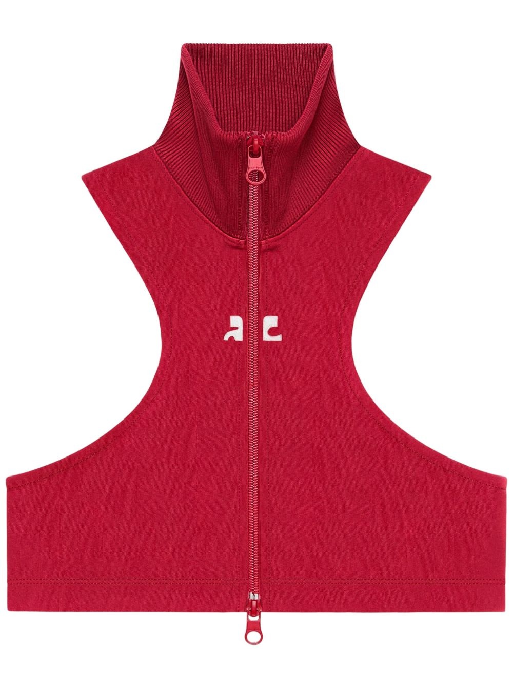 cropped gilet Highlights - Ruby red - Two-way zip fastening - High neck - Sleeveless Imported Composition Polyester 100%