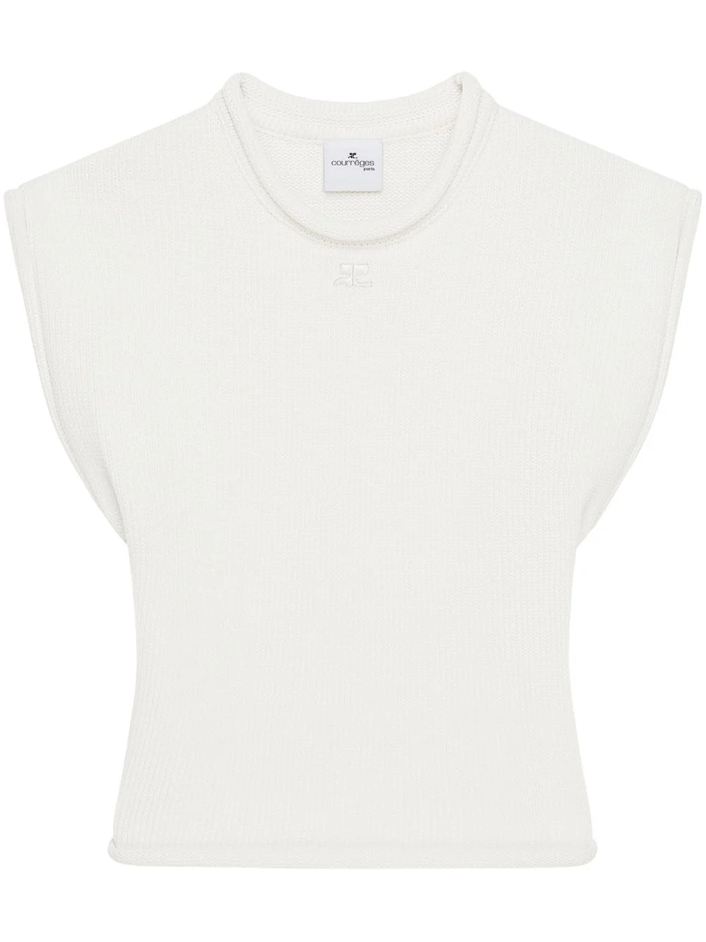 cropped sweater Highlights - White - Round neck - Sleeveless - Embroidered logo to the front Imported Composition Cotton 100% Washing instructions Read Manufacturer Guidelines