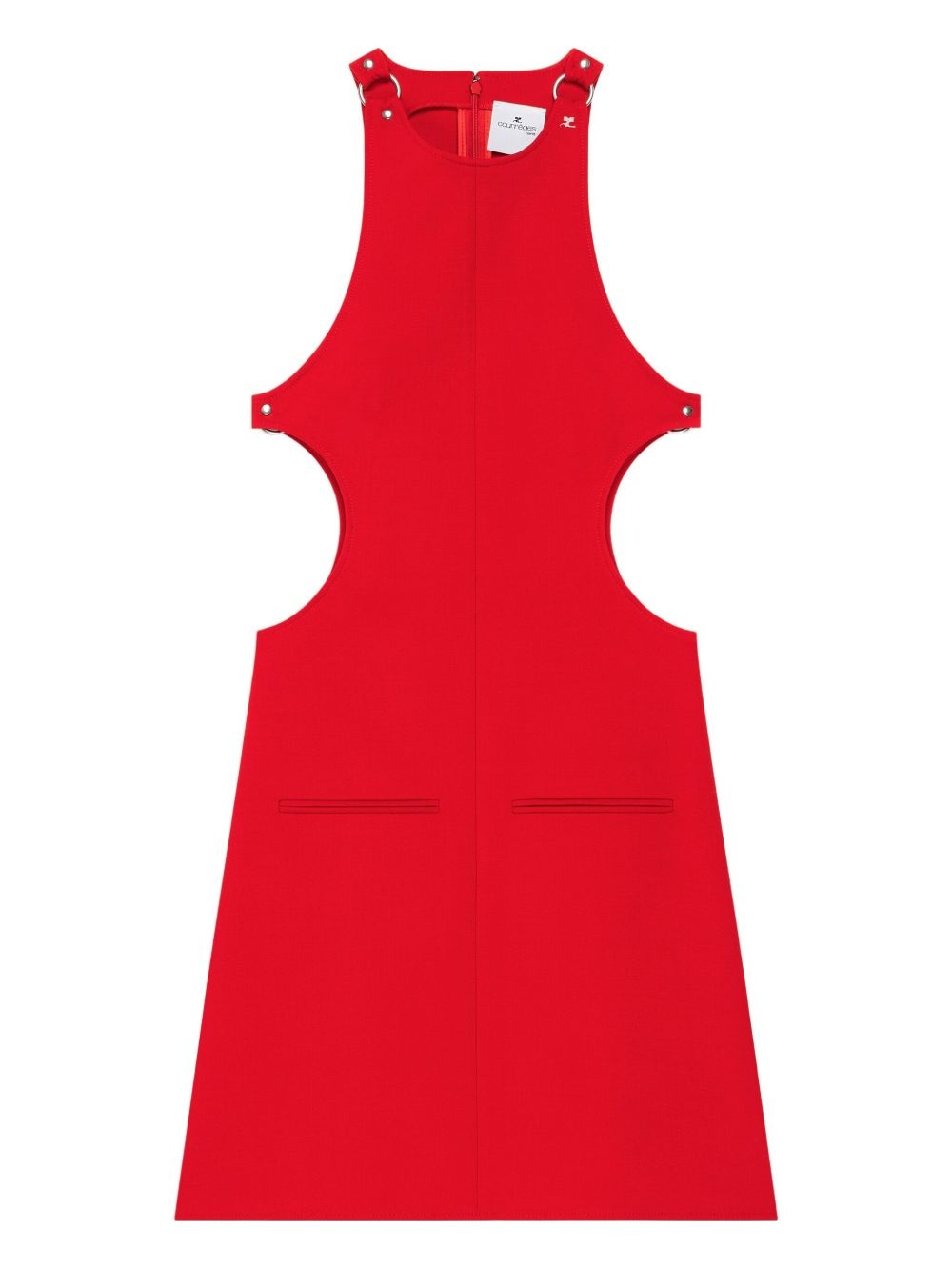 cut-out detail sleeveless dress Highlights - Red - Cut-out side details - Snap-button embellishments - Two front pockets - Halter neck design Imported Composition Outer: Wool 93%, Elastane 7%