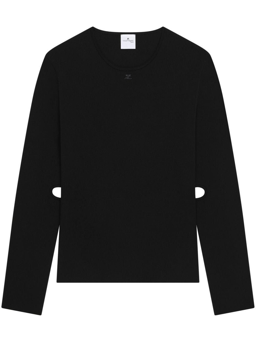 cut-out jumper Highlights - Black - Embroidered logo to the front - Cut-out detailing - Crew neck - Long sleeves Imported Composition Outer: Viscose 70%, Polyester 30%