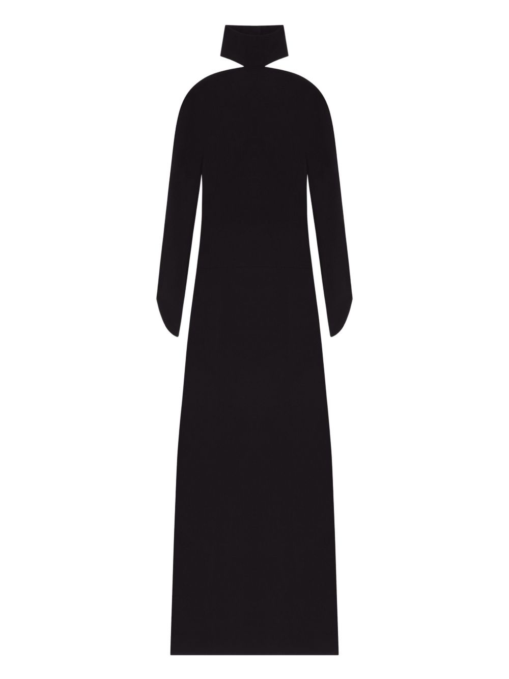 cut-out long-sleeve gown Highlights - Black - High neckline - Cold shoulder design - Figure-hugging silhouette - Floor-length - Elegant draping Made in Italy Composition Outer: Polyester 89%, Polyurethane 11% Washing instructions Read Manufacturer Guidelines