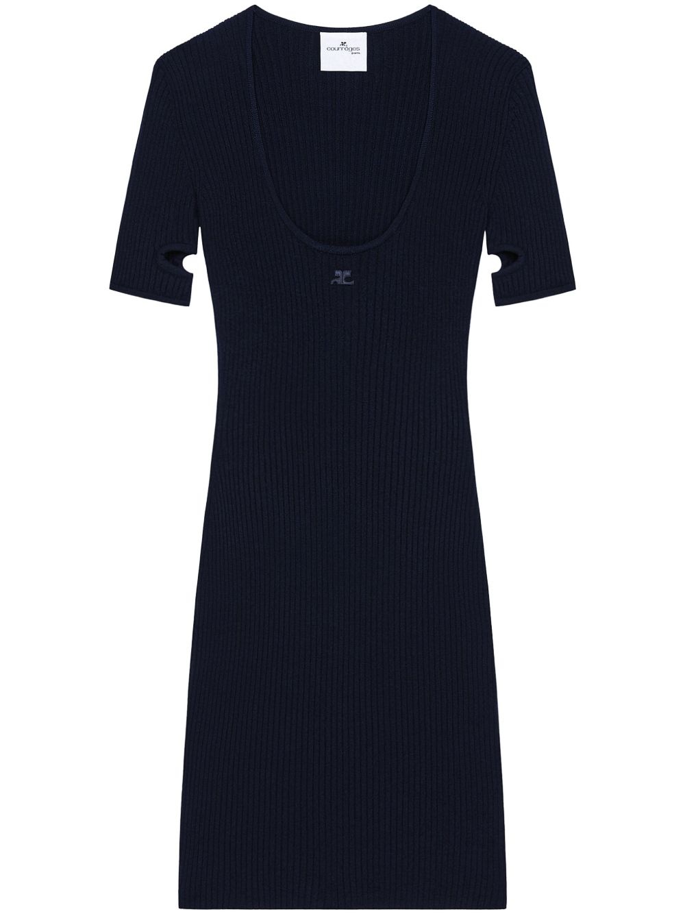 cut-out mini dress Highlights - Navy blue - Tonal logo plaque - Scoop neck - Short sleeves Made in Italy Composition Viscose 70%, Polyester 30%