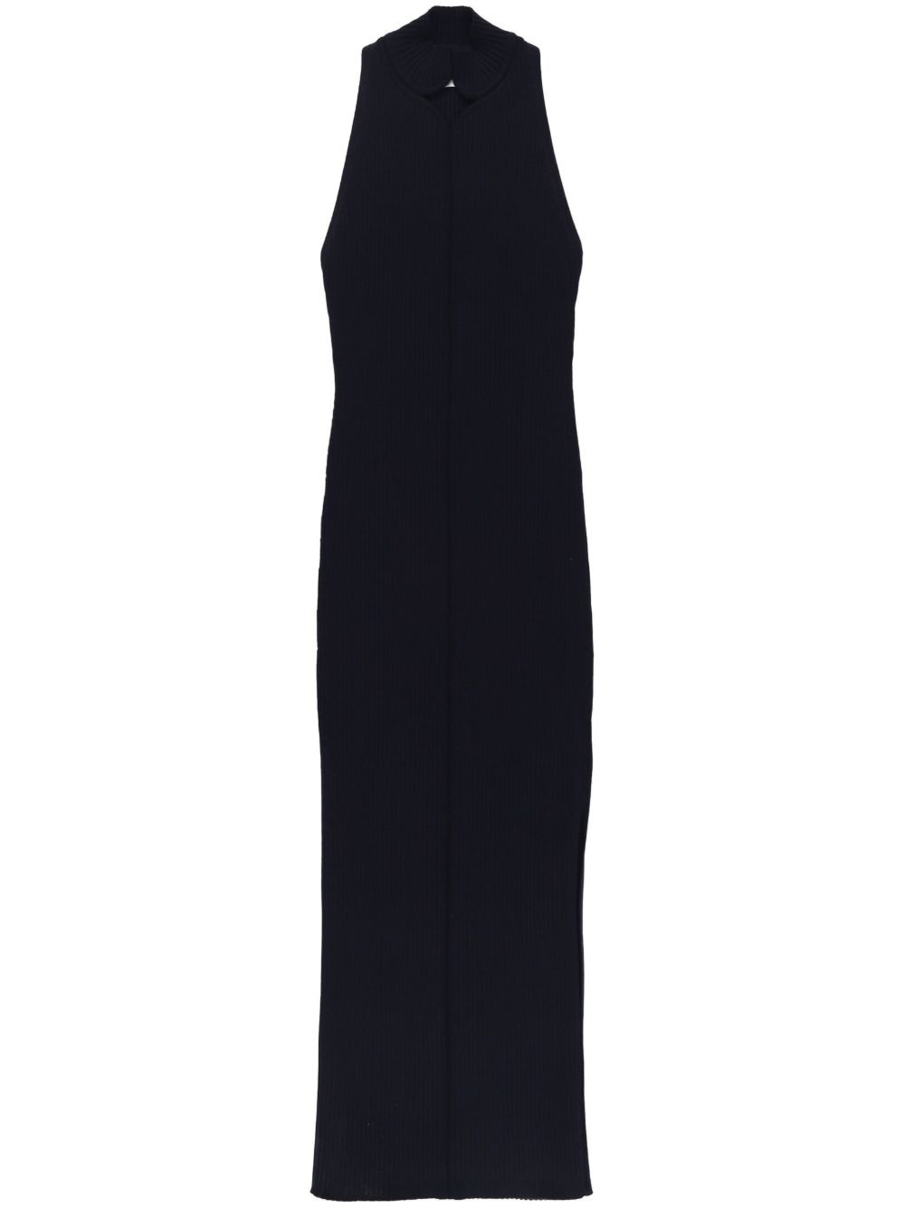 cut-out ribbed midi dress Highlights - Navy blue - Fine knit - Cut-out detailing - Side slits - Round neck - Sleeveless - Mid-length Imported Composition Polyester 100% SIZE & FIT Measurement CHEST 22.83 in(58 cm) HIPS 23.62 in(60 cm) LENGTH 50.78 in(129 cm) WAIST 20.47 in(52 cm)