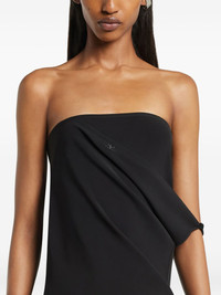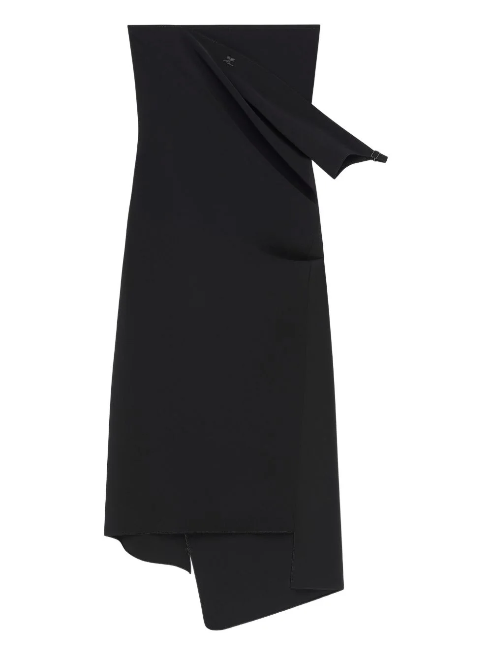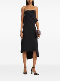 draped asymmetrical midi dress Highlights - Black - Strapless neckline - Asymmetrical hem - Draped bodice Imported Composition Polyester 89%, Polyurethane 11% Washing instructions Read Manufacturer Guidelines